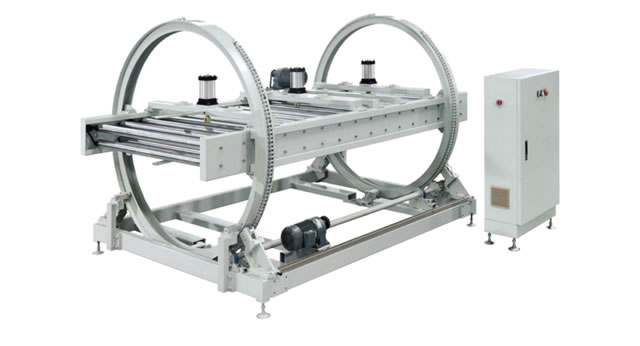 適用于平面門(mén)板、櫥柜側(cè)板、硅酸鈣板、玻鎂板、水泥纖維板等板式工件,配套連線(xiàn)作業(yè)時(shí)進(jìn)行180°自動(dòng)翻面。