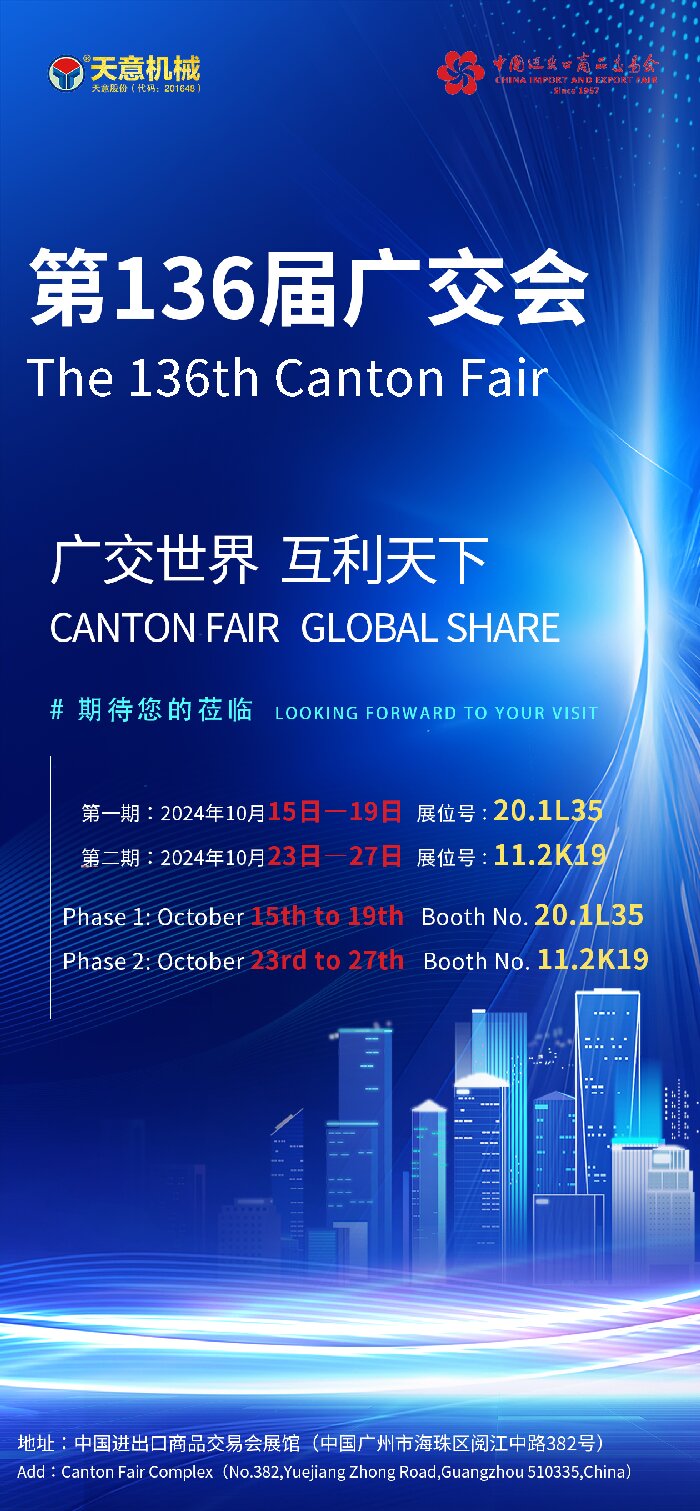 第136屆廣交會(huì)的日益臨近,天意機(jī)械已經(jīng)整裝待發(fā),期待在展會(huì)期間與全球客戶探討合作機(jī)會(huì),推動(dòng)雙方共同發(fā)展。未來,天意機(jī)械將繼續(xù)秉承“質(zhì)量第一、客戶至上”的理念,不斷提升自身的技術(shù)實(shí)力和市場(chǎng)競(jìng)爭(zhēng)力,為全球客戶提供更加優(yōu)質(zhì)的產(chǎn)品和服務(wù)。
