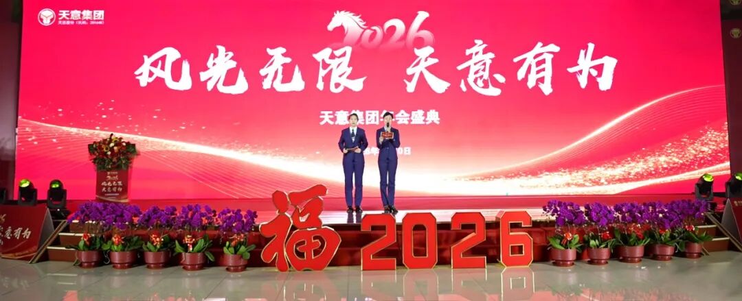 時光荏苒,華章新啟。滿載2025的榮光與碩果,天意集團全體家人齊聚一堂,共赴以“風光無限 天意有為”為主題的2026馬年年會盛典。這場盛會既是回望奮斗的感恩之約,更是奔赴新程的奮進之會,天意人一同回望耕耘路、共繪未來藍圖,在辭舊迎新之際,凝聚起同心筑夢、策馬揚鞭的磅礴力量。